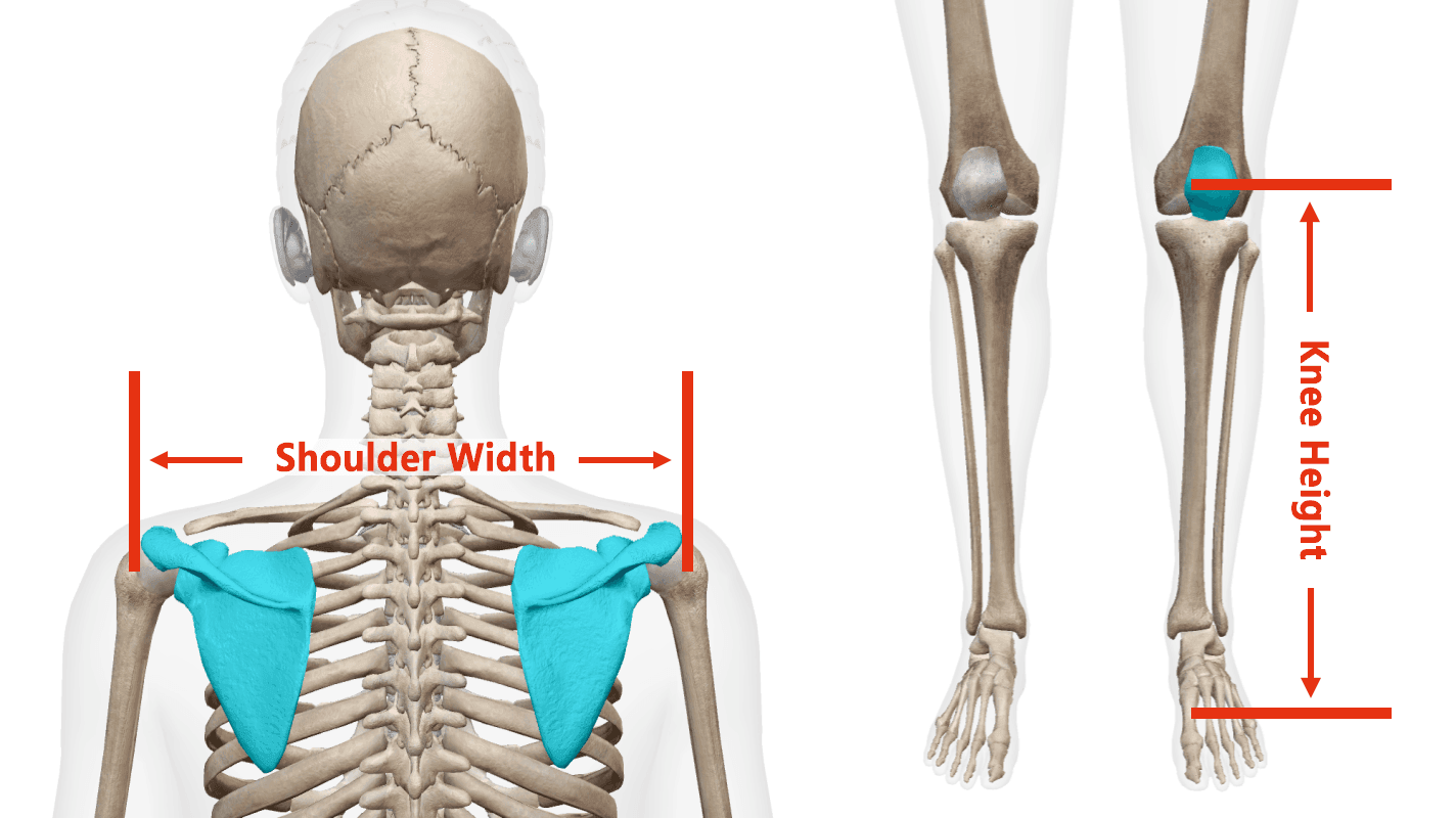 Knee height (standing) is the vertical distance from the ground to the kneecap's midpoint when barefoot.